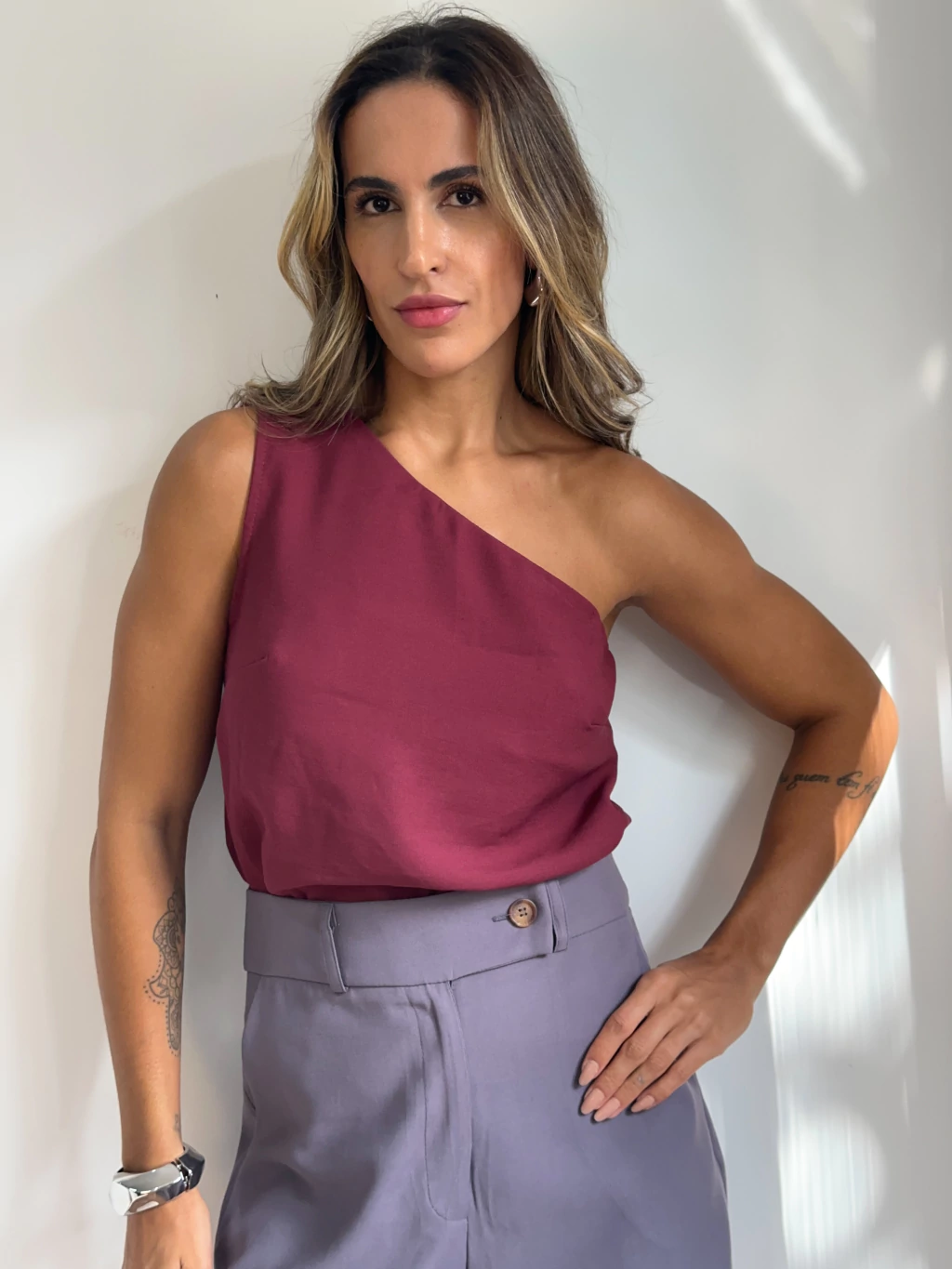 Apresentamos a blusa perfeita para você que busca um look moderno e confortável! Confeccionada em viscose leve e fluida, esta blusa de um ombro só é ideal para os dias mais quentes.