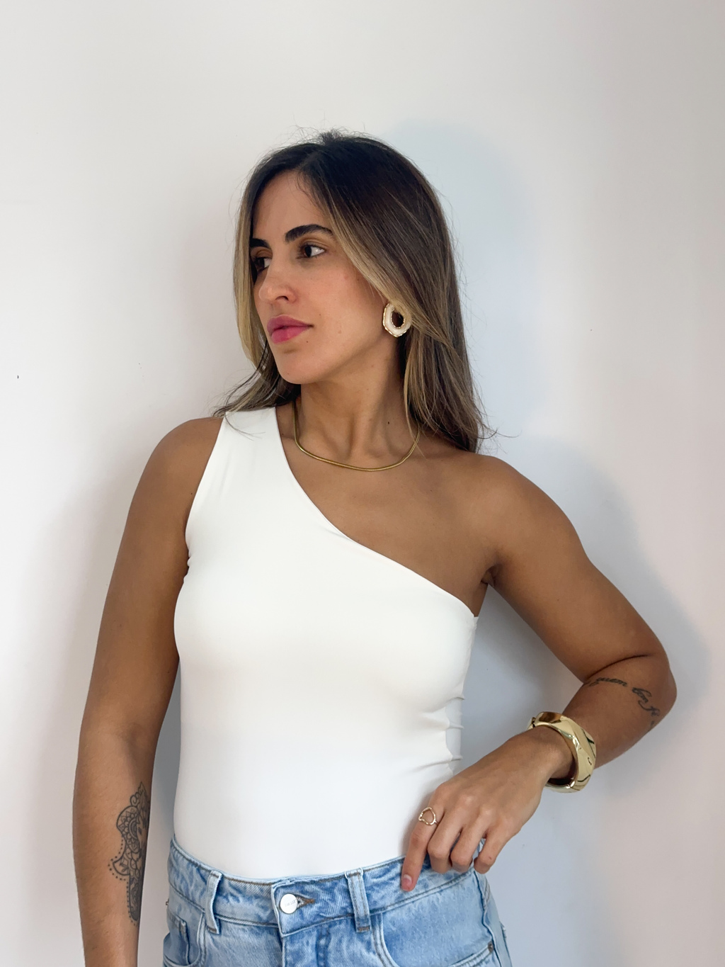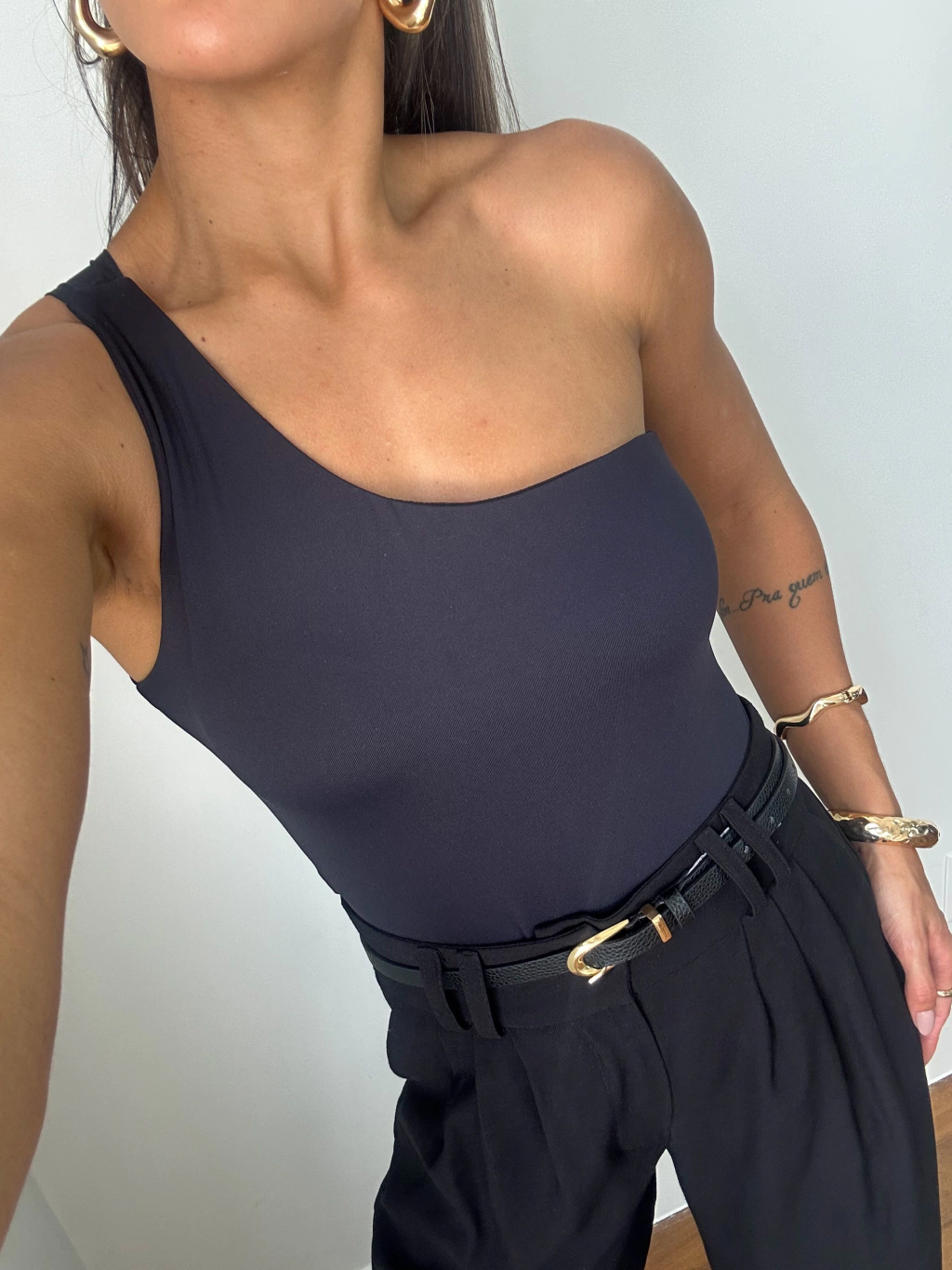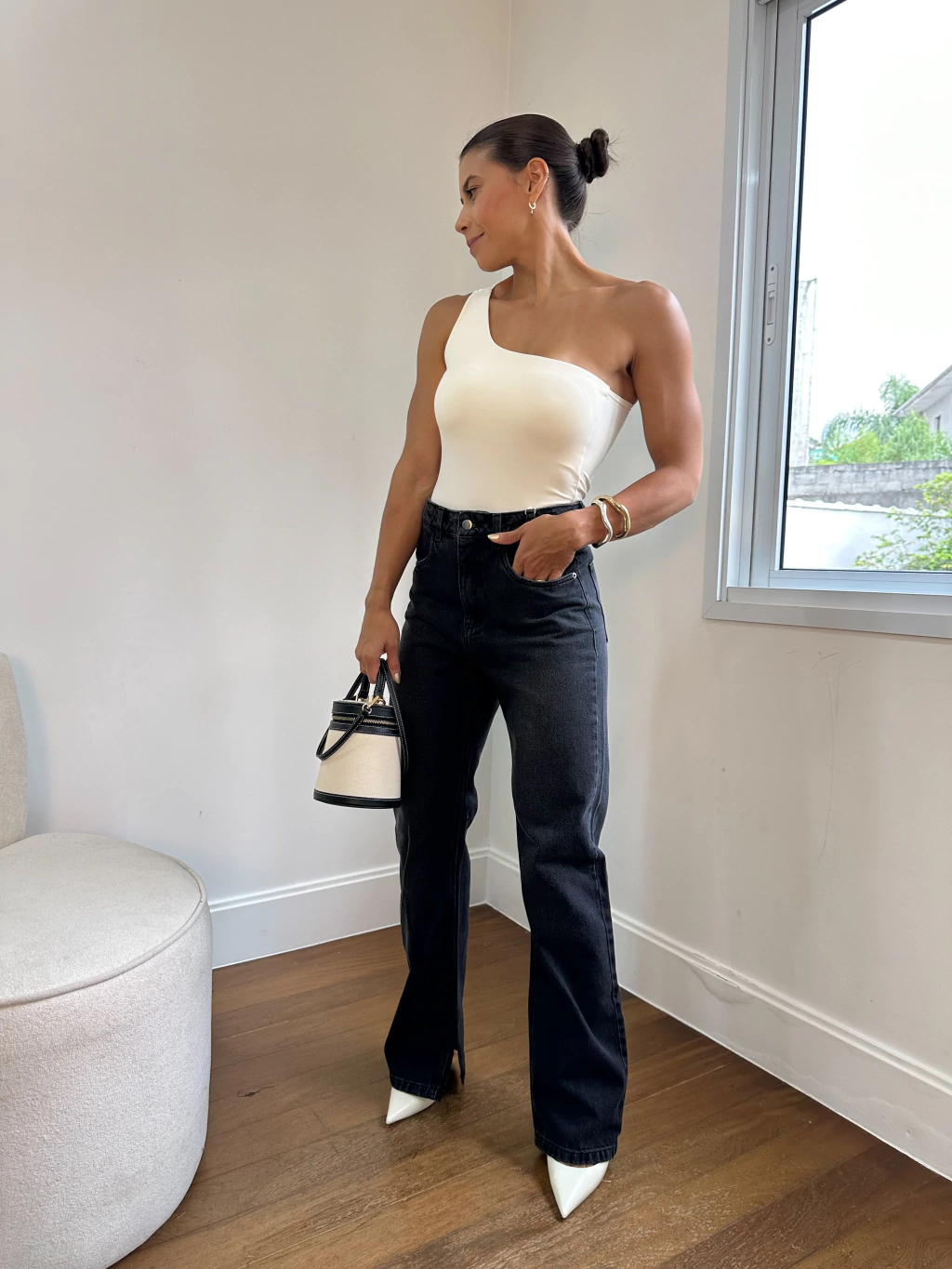 Sinta-se poderosa e confortável com nosso body um ombro só! Ideal para te acompanhar em diversas ocasiões, desde o dia a dia até uma festa.