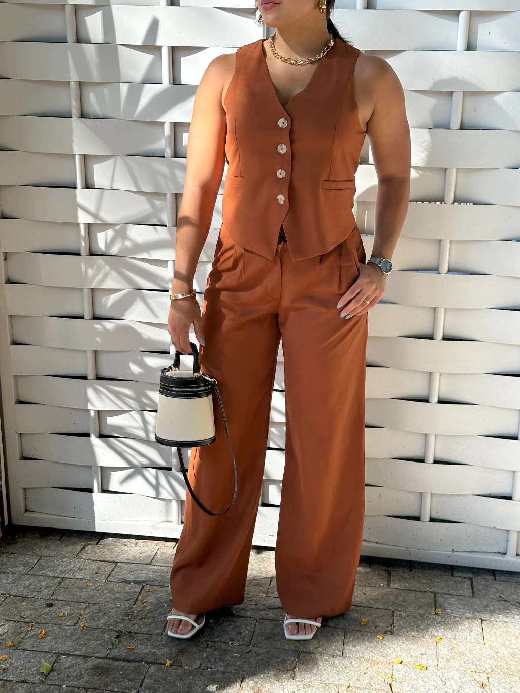 Sofisticada: O corte alfaiataria e o cós duplo garantem um visual elegante e profissional. Corte: Reto e elegante, com caimento impecável.