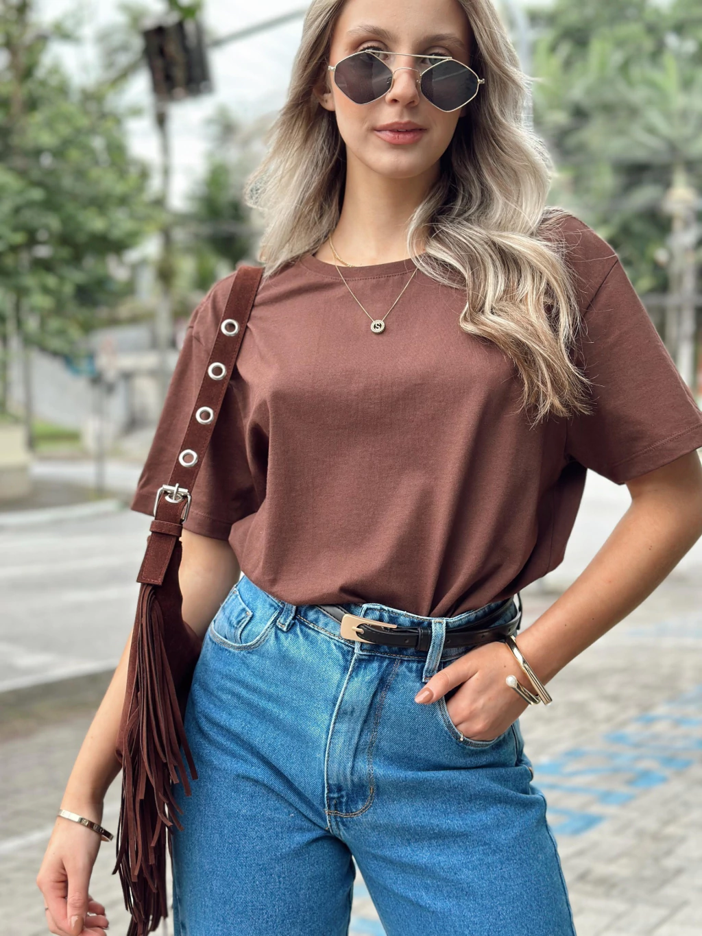 Descrição da peça: Desfrute do melhor em conforto e estilo com nossa t-shirt feminina em algodão, básica na medida certa tornando-a ideal para um look casual e elegante. Combine com jeans ou peças de alfaiataria para um toque de sofisticação descomplicada.